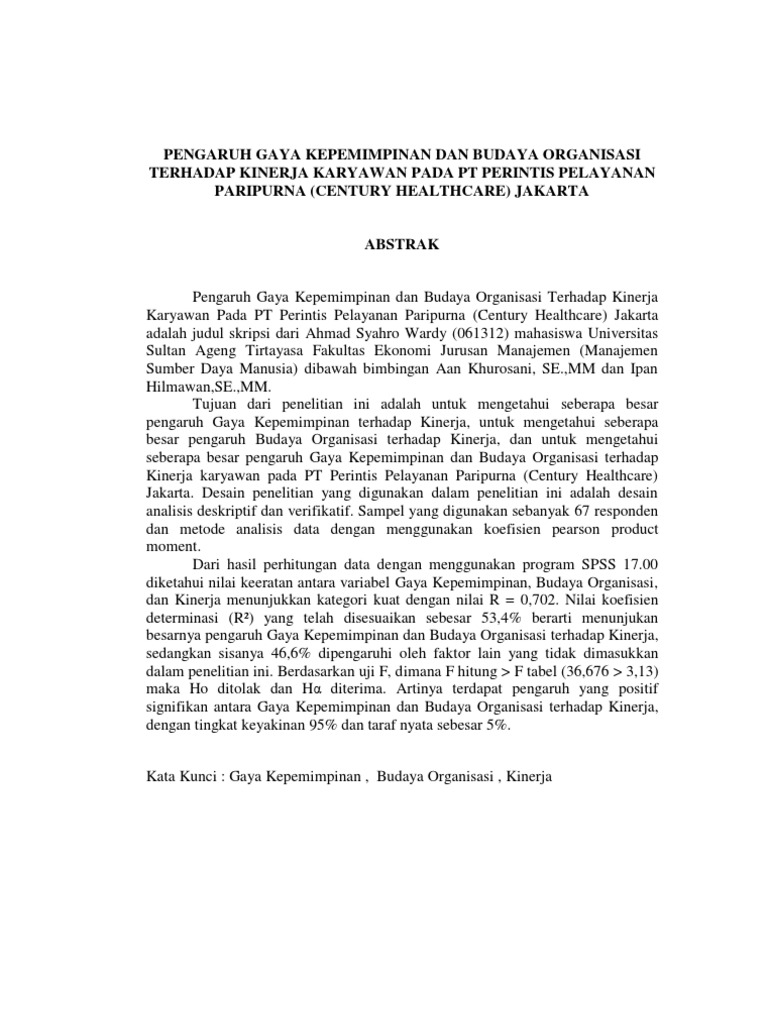 DAFTAR Terhadap Kinerja Karyawan (Jurnal … Analisis Hubungan Gaya Kepemimpinan Terhadap Kinerja … dan Mutu Gaya Kepemimpinan Terhadap Kinerja Pegawai … - [PDF Document]