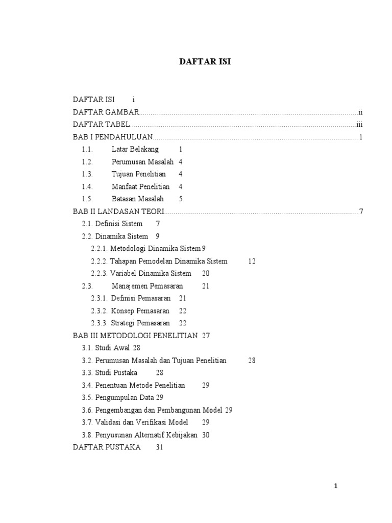 Daftar isi proposal calon skripsi