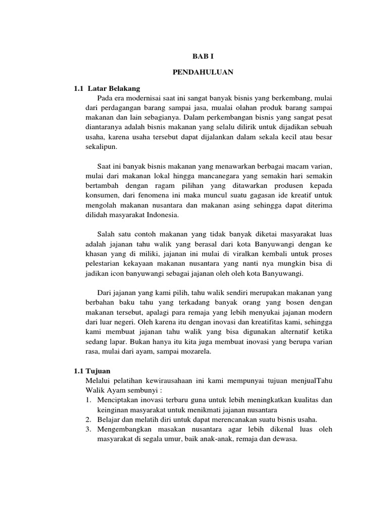 DOC) CONTOH PROPOSAL PENDIRIAN USAHA TAHU PEDAS | Calvin Mamoto - Academia.edu