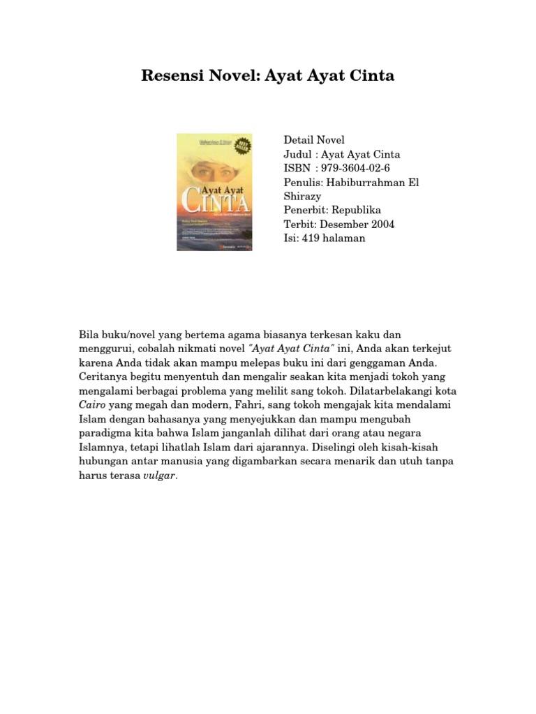 Resensi Novel Ayat Ayat Cinta Karangan Habiburrahman El Shirazy Republika Paket Novel Ayat Ayat Cinta 2 Ttd Ayat Ayat Cinta 1 Sinopsis Novel Ayat Ayat Cinta… di 2020