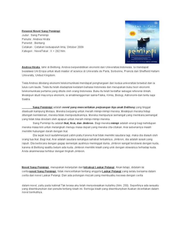 DOC) RESENSI NOVEL sang pemimpi | Tika Sartika - Academia.edu