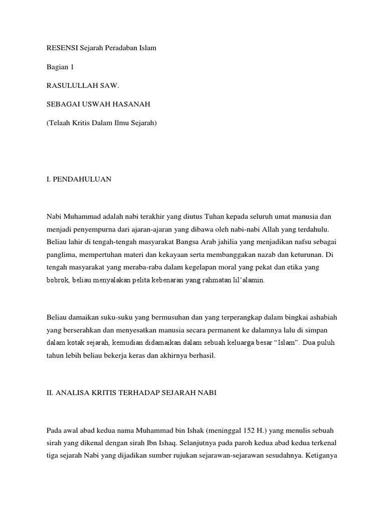 DOC) Resensi Buku Sejarah Islam | Chichi ‘Aisyatud Da’watiz Zahroh - Academia.edu