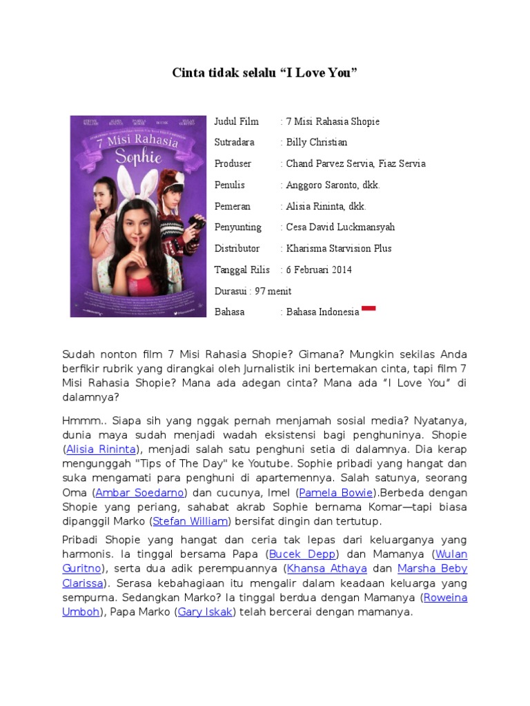 Nada-resensi Film 7 Misi Rahasia Shopie, Cinta tidak selalu I Love You.rtf