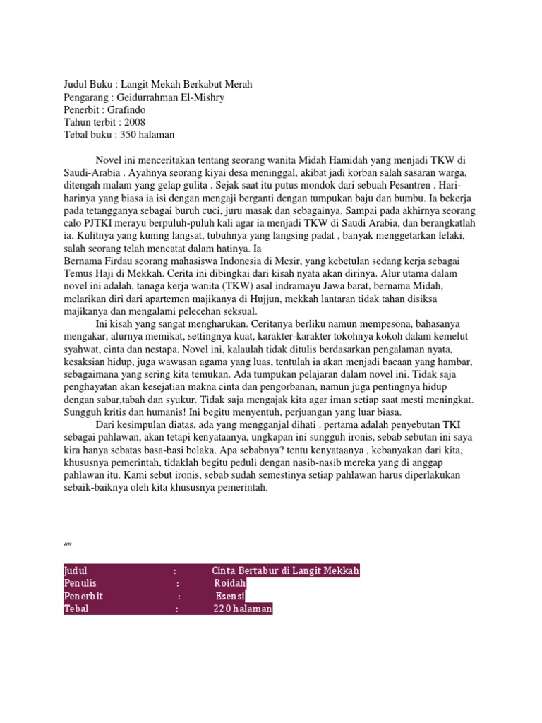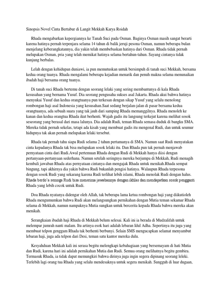 Sinopsis Novel Cinta Bertabur Di Langit Mekkah Karya Roidah - [DOCX Document]