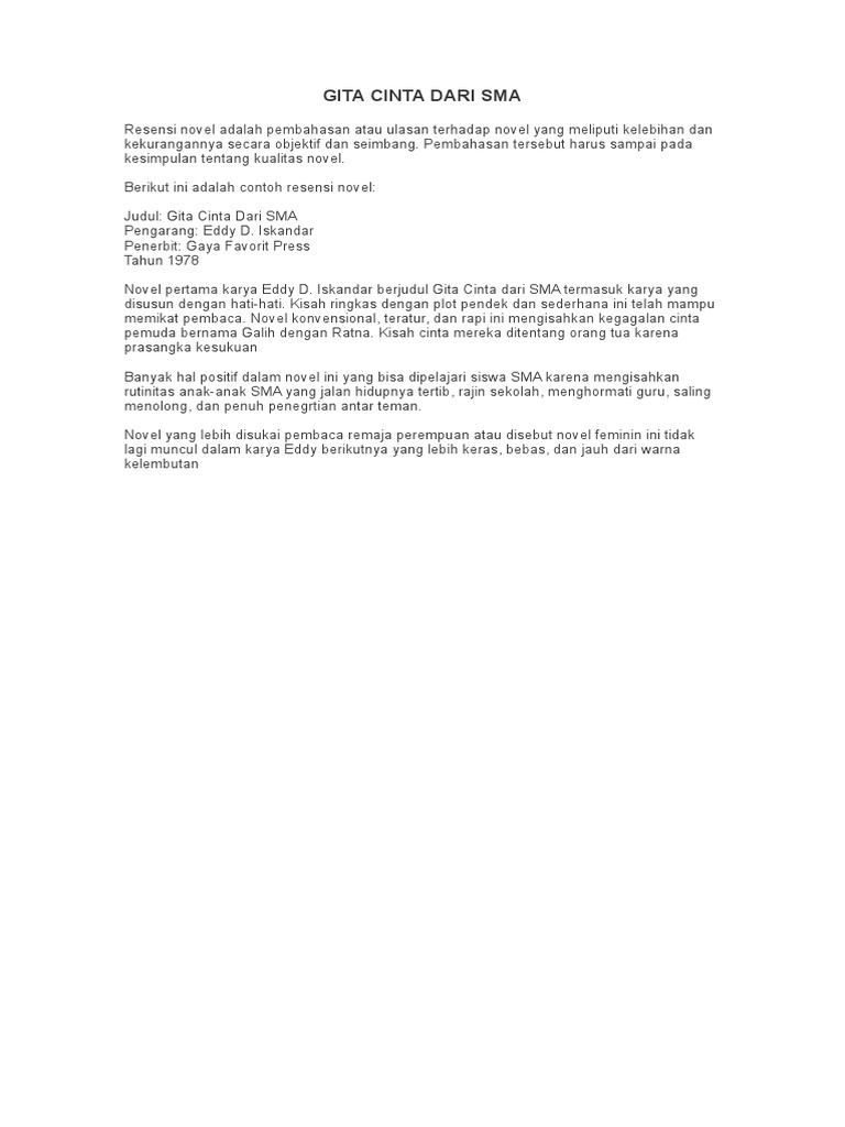 Contoh Resensi Novel Gita Cinta Dari Sma - Kumpulan Contoh Makalah Doc Lengkap