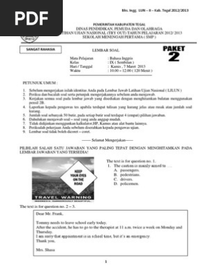 Soal Try Out Bahasa Inggris Paket 2 | Makanan | Alam