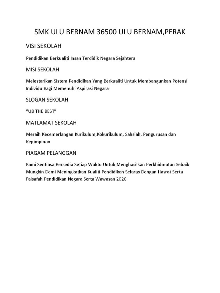 FALSAFAH, MISI, VISI, MOTO & SLOGAN - SMK SERI PERPATIH