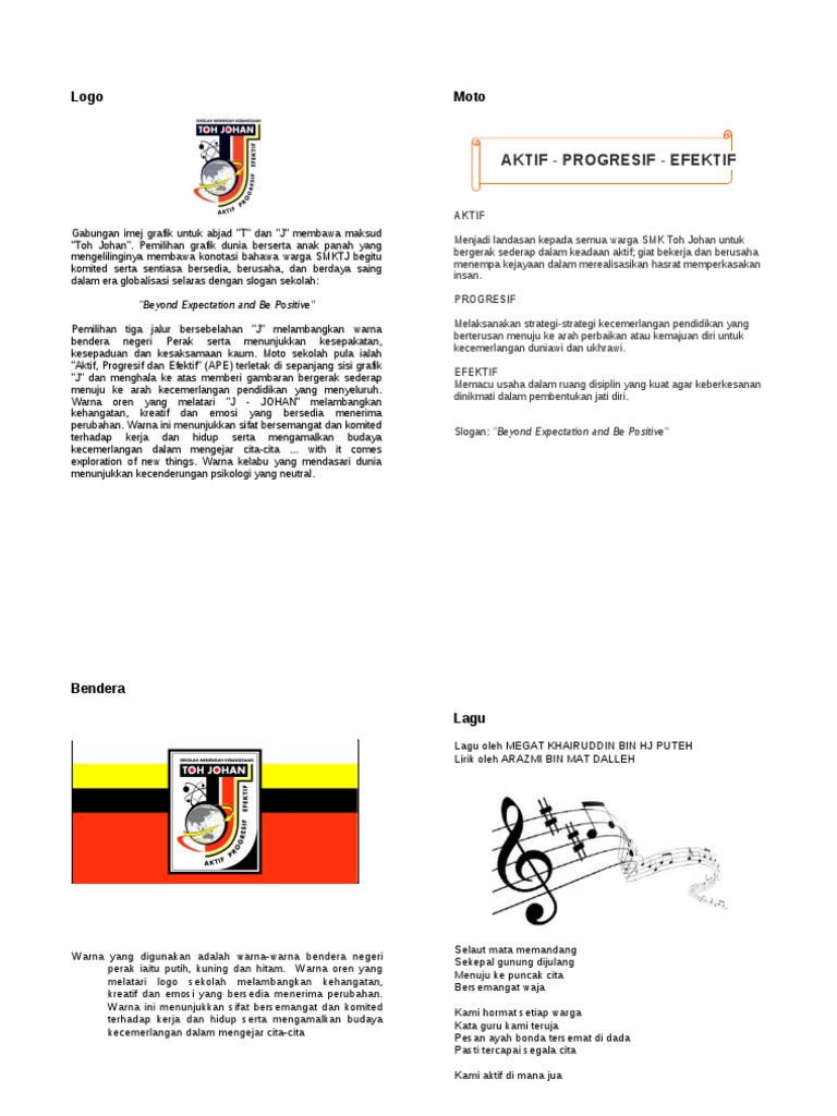 Visi Misi Dan Lain-lain SMK Toh Johan, Trong