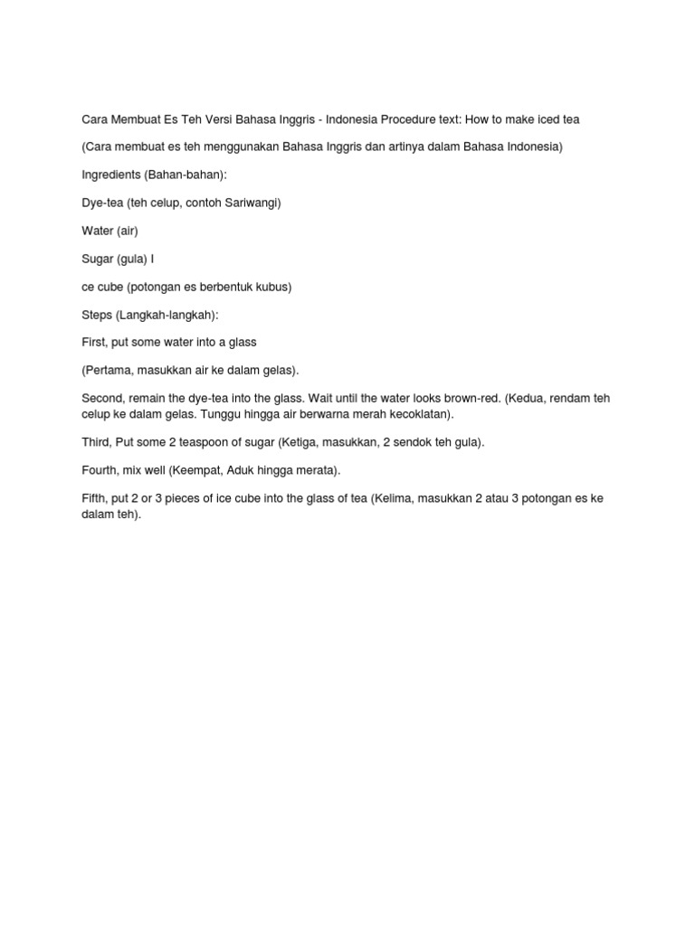 Teks Prosedur Teh Manis Bahasa Inggris - Berbagai Teks Penting
