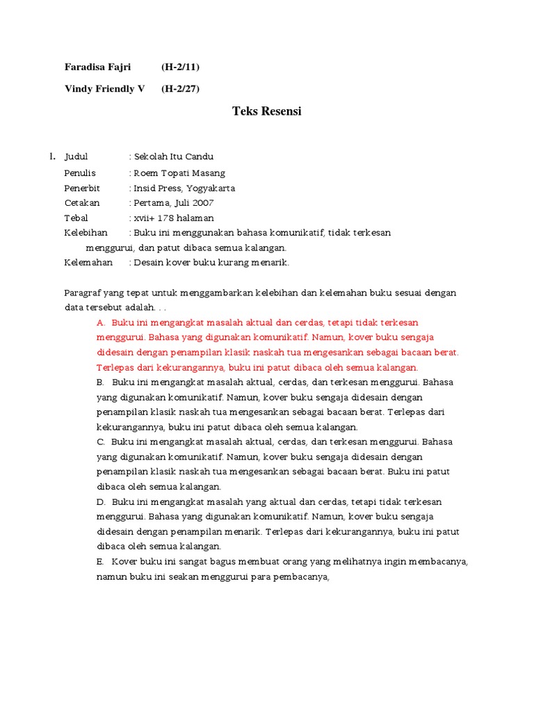 Bahasa Indonesia Kelas 8 - Soal Latihan Teks Resensi - Mataoker