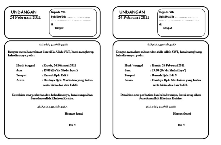 DOC) Contoh Surat Undangan Tahlil 40, 100, 1000 hari | Teja Sukmana - Academia.edu