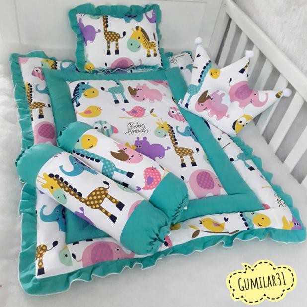 Bedcover bayi set bantal guling bayi motif baby animal mix tosca | Shopee Indonesia