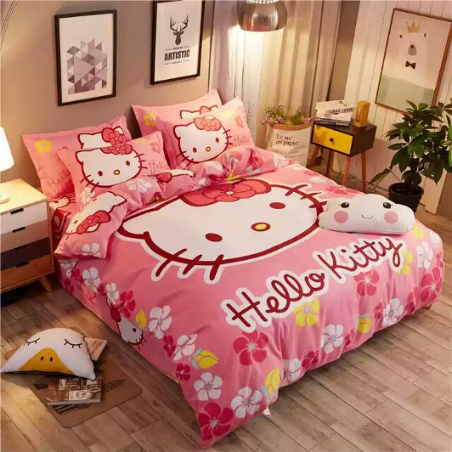 Hello Kitty bedsheet set cadar single queen king with quilt cover+quilt(option) | Shopee Singapore