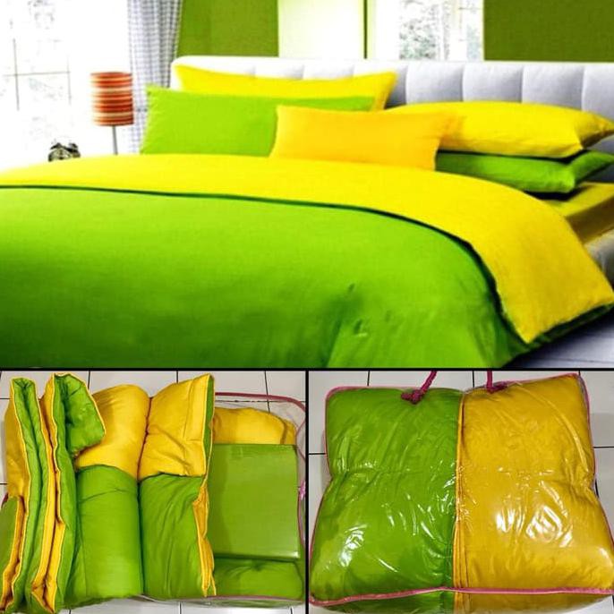 BEDCOVER SET POLOS BOLAK BALIK 2 WARNA HIJAU KUNING 180X200 KATUN CVC - 180X200X20 | Shopee Indonesia