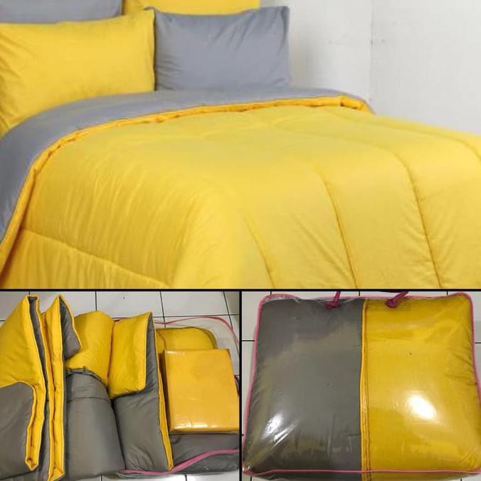 BEDCOVER SET POLOS BOLAK BALIK 2 WARNA KUNING ABU 180X200 KATUN CVC - 160X200X20 | Shopee Indonesia