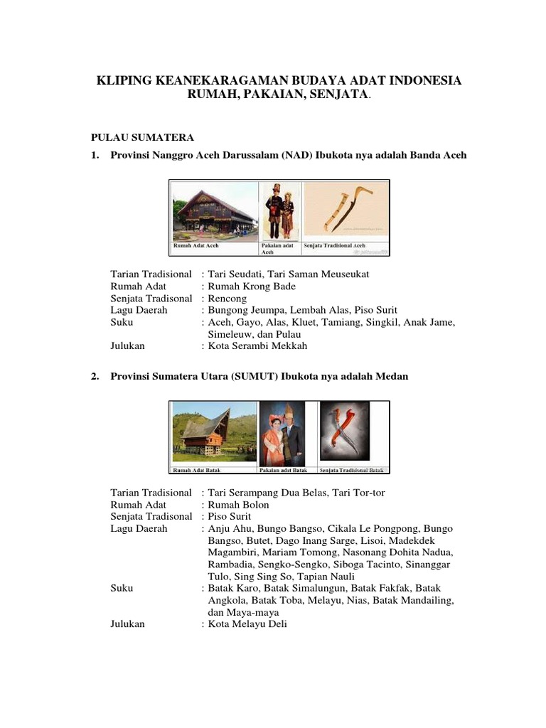DOC) KLIPING RUMAH ADAT, PAKAIAN ADAT, TARIAN ADAT DAN MAKANAN KHAS INDONESIA | mustaqim as-salim - Academia.edu