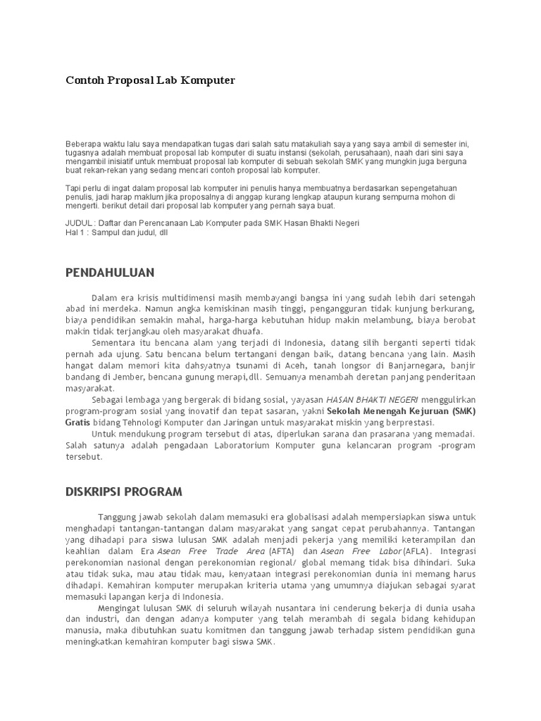 Contoh Proposal Pengadaan Lab Komputer Sekolah Doc - Berbagi Contoh Proposal