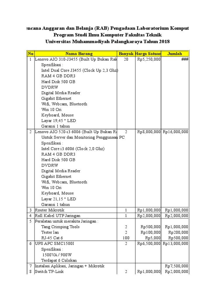 Proposal Pembangunan Lab Komputer Dan Peralatannya - PDF Free Download