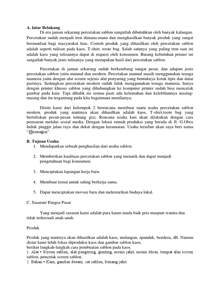 DOC) CONTOH PROPOSAL USAHA SABLON | Khairul Azmi - Academia.edu