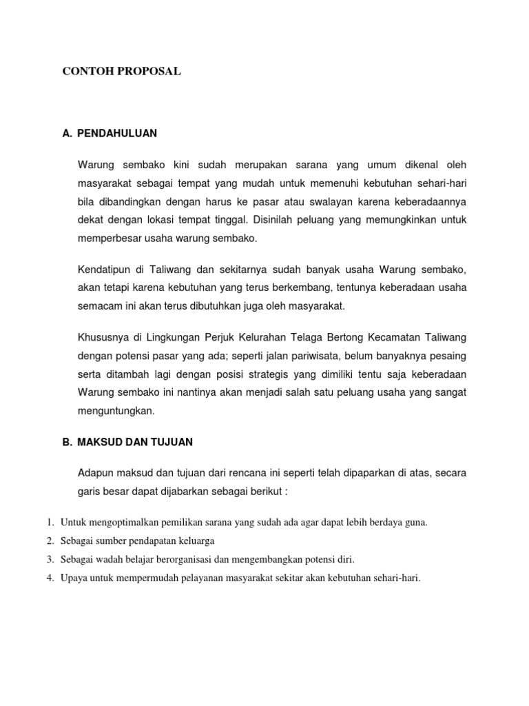 Pdf) Contoh Proposal Usaha Toko Sembako Singkat - Seputar Proposal