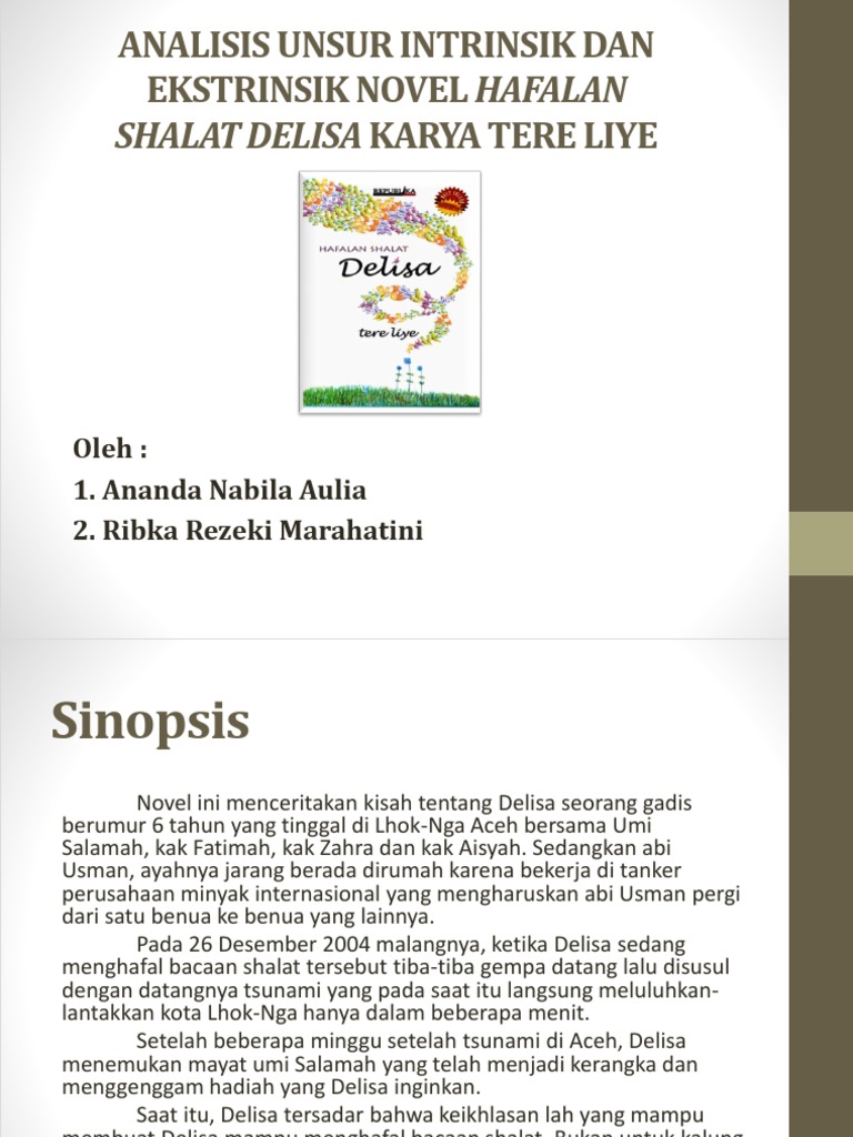 DOC) Resensi Novel Hafalan Shalat Delisa | dila prastya - Academia.edu