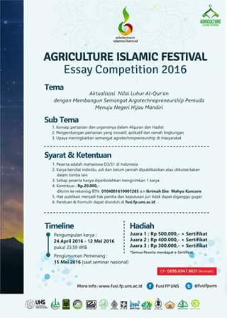 Lomba Menulis Esai - AGRIFEST ESSAY COMPETITION Fakultas Pertanian UNS | Info Lomba Menulis