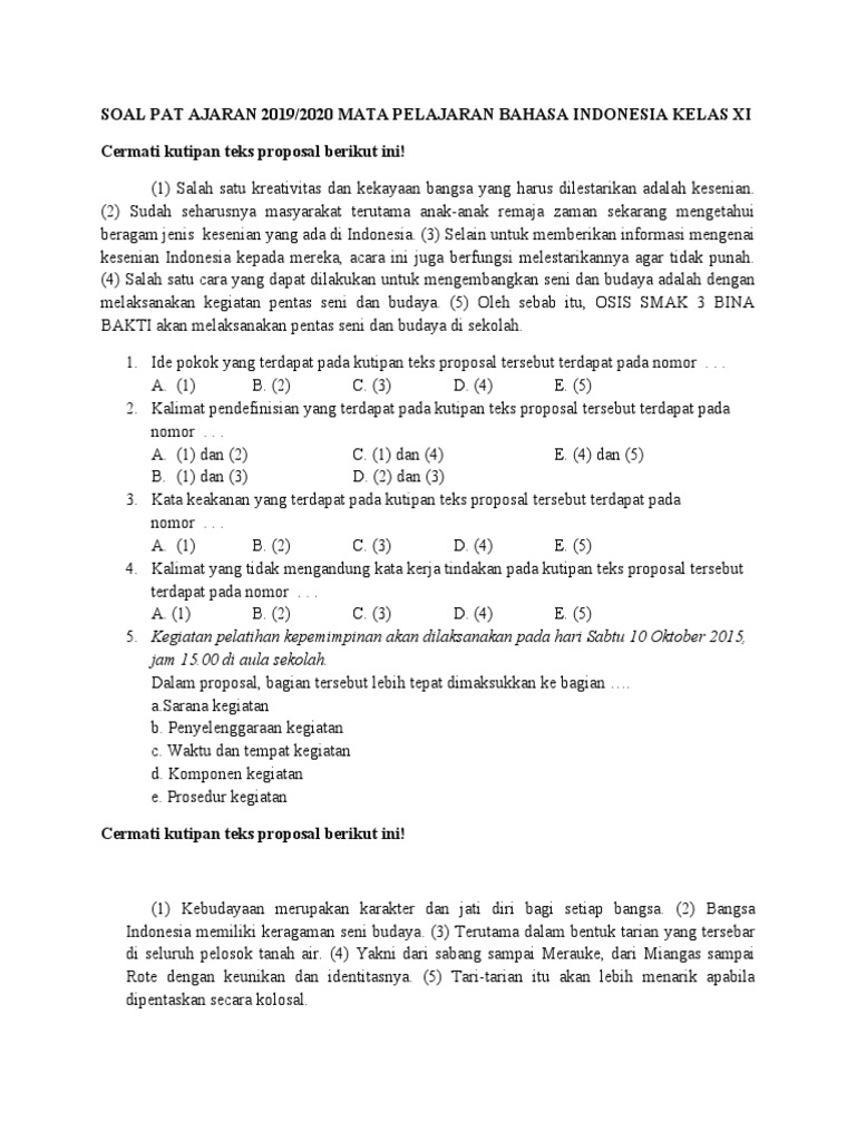 Soal Pat Ajaran 2019/2020 Mata Pelajaran Bahasa Indonesia Kelas Xi Cermati kutipan teks proposal berikut ini!