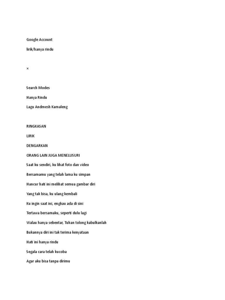 lirik lagu ANDMESH KAMALENG - HANYA RINDU - Wattpad