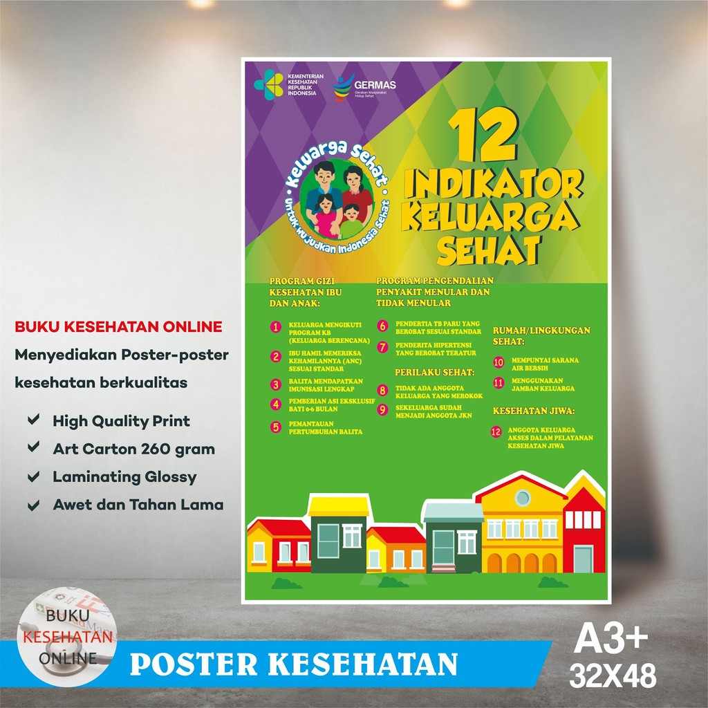 Poster Kesehatan - 12 INDIKATOR KELUARGA SEHAT (2) - LAMINATING GLOSSY | Shopee Indonesia