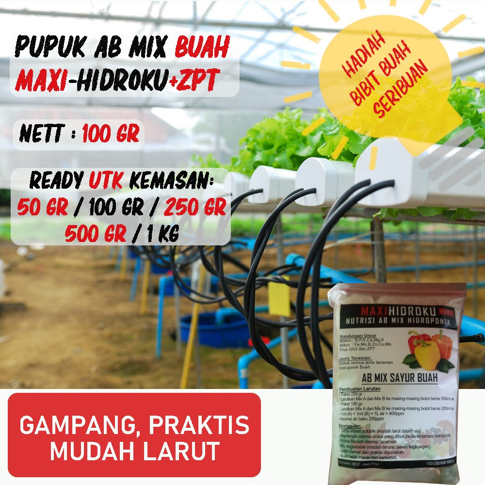 Pupuk Hidroponik AB Mix Buah 100 Gram 40 Liter (Pekatan 200 ml) | Shopee Indonesia