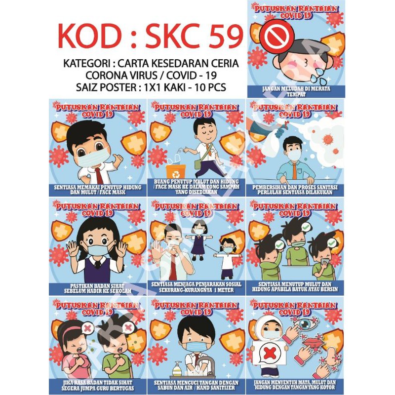OFFER (Sekolah) 10 keping poster kesedaran C O V I D 1x1 kaki | Shopee Malaysia