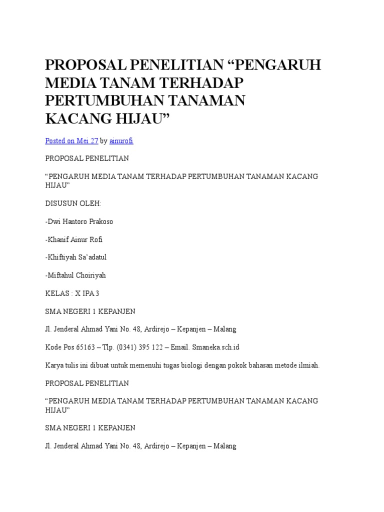 Contoh Proposal Penelitian Tanaman Kacang Hijau - Berbagi Tanam