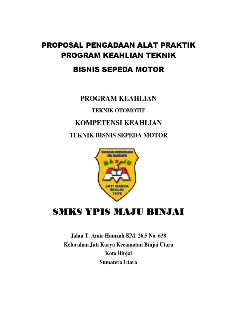 Smks Ypis Maju Binjai: Proposal Pengadaan Alat Praktik Program Keahlian Teknik Bisnis Sepeda Motor