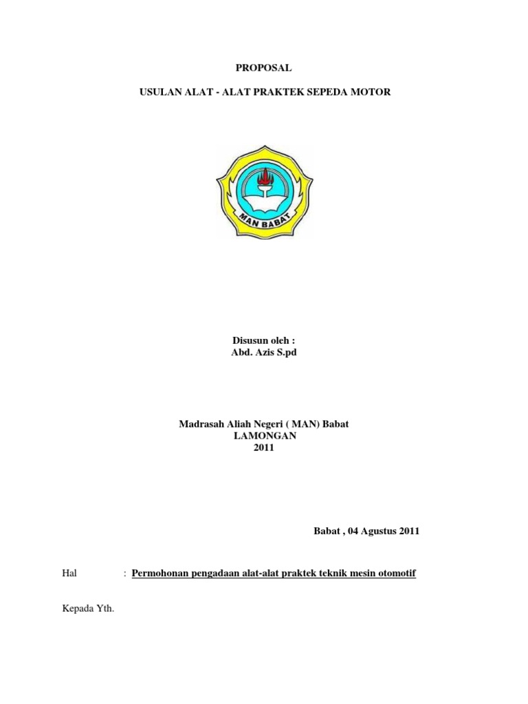 Contoh Proposal Permohonan Bantuan Alat Bengkel Motor - Berbagi Contoh Proposal