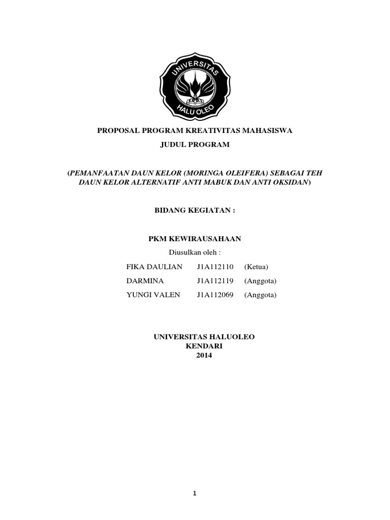 KEMENTERIAN RISET, TEKNOLOGI, DAN PENDIDIKAN tip. PROPOSAL PROGRAM KREATIVITAS MAHASISWA … Thulup Bahan Alternatif Teh Celup Herbal Bunga Krop … Wortel Dan Brokoli Dengan Bentuk - [PDF Document]