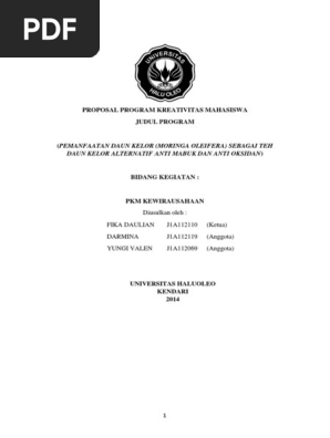 8, Walter Kohn_Teh Daun Kelor sebagai Suplemen Pencegah Kaner dan Tumor.docx - PROPOSAL PROGRAM KREATIVITAS MAHASISWA TEH DAUN KELOR SEBAGAI SUPLEMEN | Course Hero