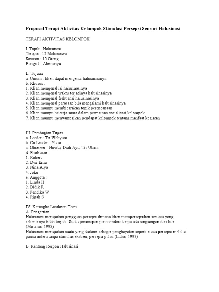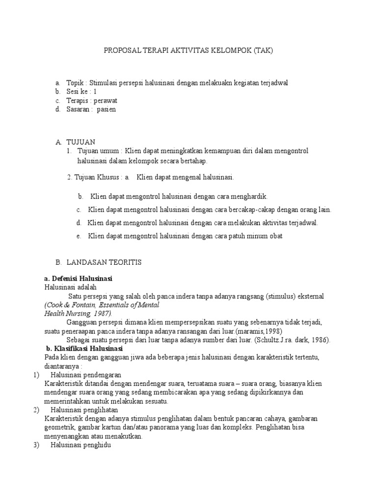 Contoh Proposal Terapi Aktivitas Kelompok Halusinasi - PDF Free Download