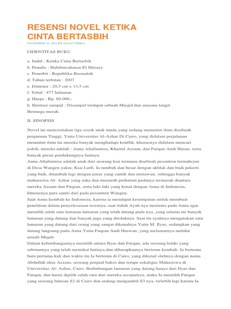 resenesi b.indo kcb.txt - Resensi Novel ketika cinta bertasbih Text Box Ketika Cinta Bertasbih I IDENTITAS BUKU a Judul Ketika Cinta Bertasbih b Penulis | Course Hero
