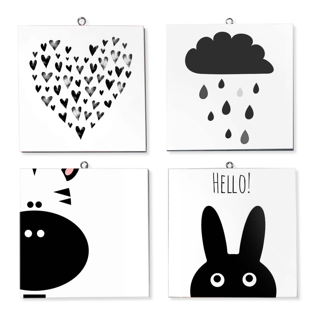 Poster Dinding Bahan Kanvas Gambar Kartun Beruang dan Kelinci Warna Hitam Putih untuk Kamar Anak | Shopee Indonesia