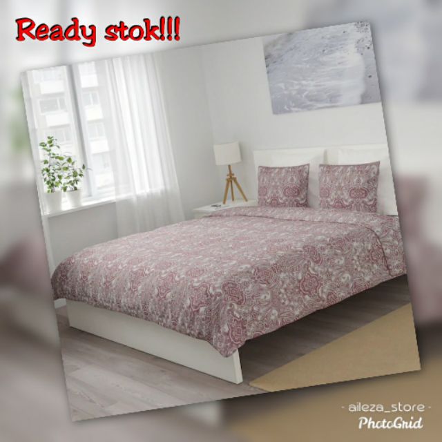 IKEA JÄTTEVALLMO Quilt cover and Pillowcases / White / Dark Pink / Selimut dan Sarung Bantal | Shopee Malaysia