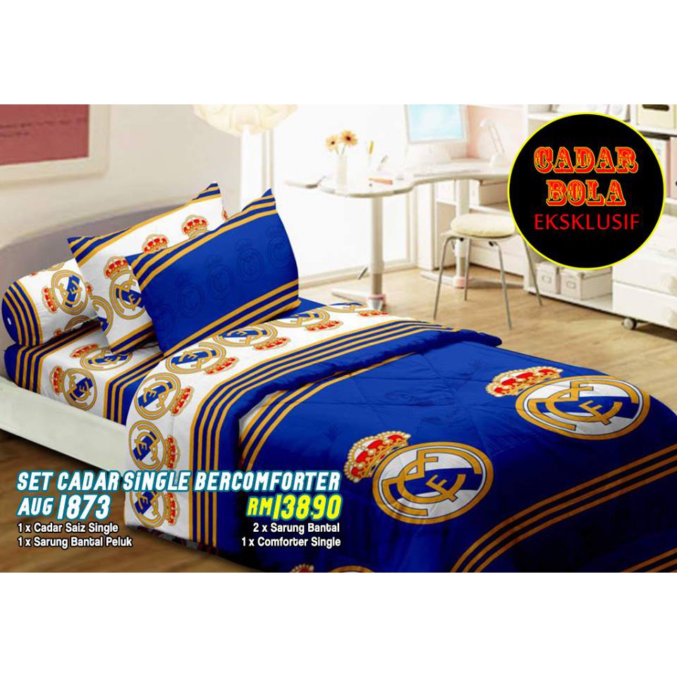 BEDSHEET SINGLE FITTED WITH COMFORTER - REAL MADRID | Shopee Malaysia