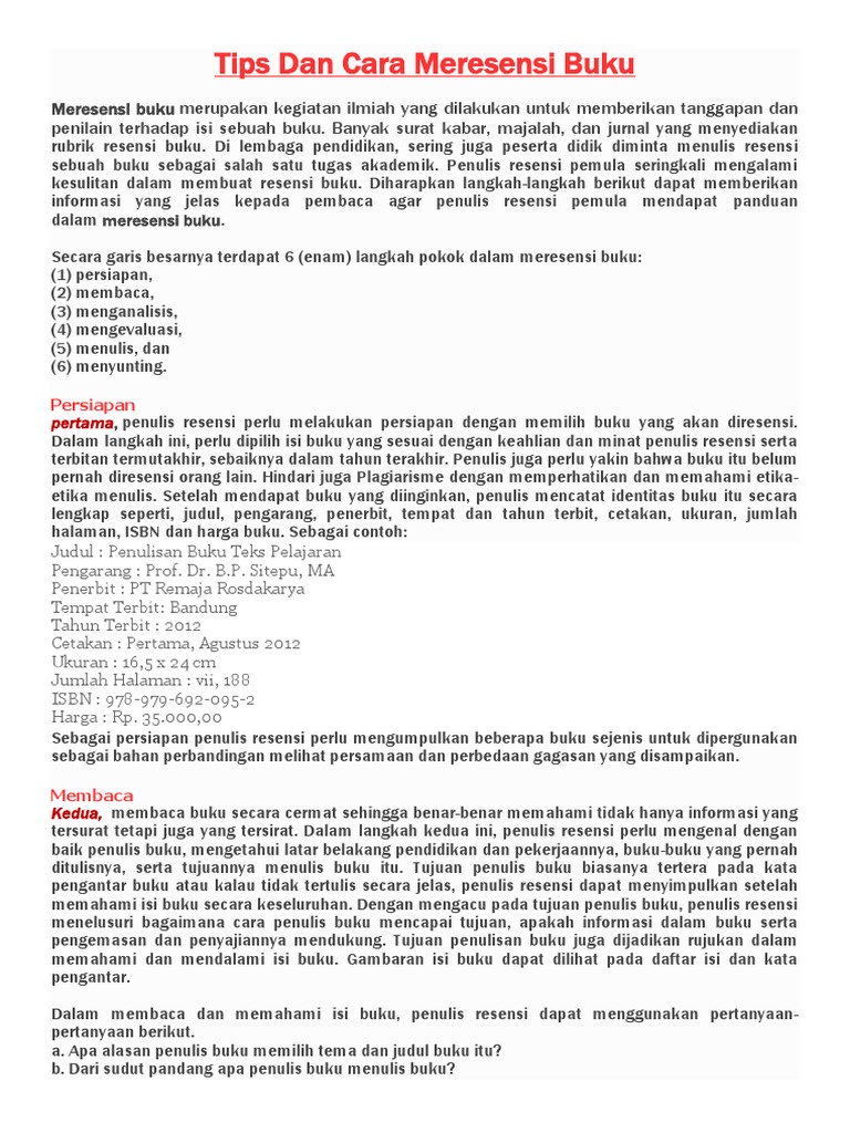 DOC) Cara Membuat Resensi Buku Yang Baik dan Benar | Nurhamsa Musa - Academia.edu