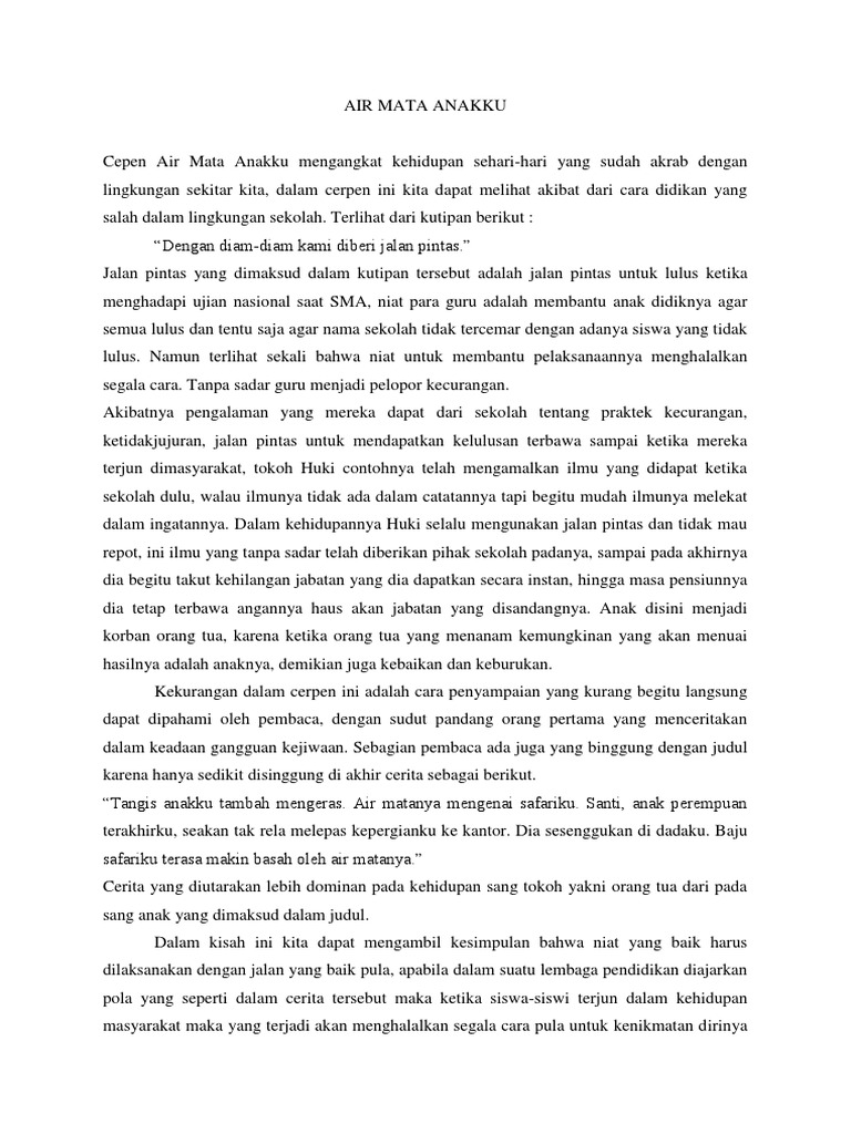 Kritik Sastra dan Esai: Kritik Sastra dan Esai : Air Mata Anakku