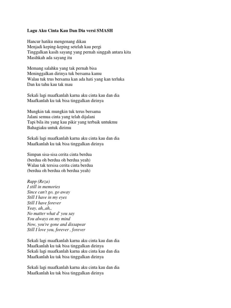 Lirik Lagu SMASH – Aku Cinta Kau Dan Dia