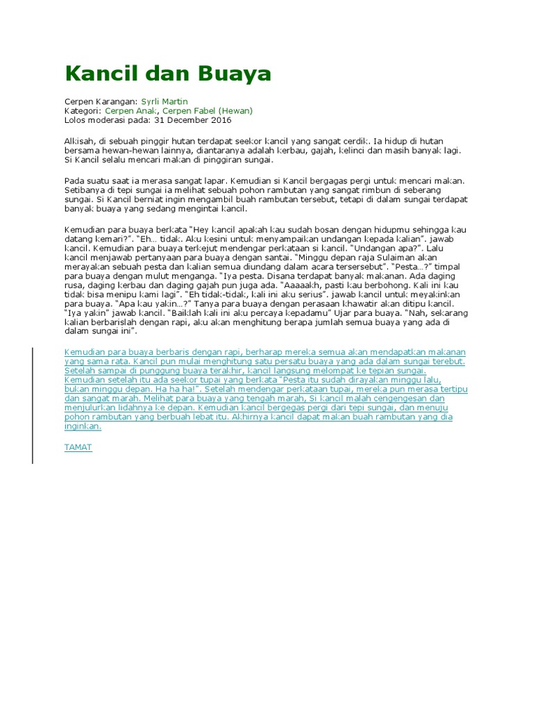 DOC) Cerita Si Kancil Yang Cerdik | kartika sari - Academia.edu