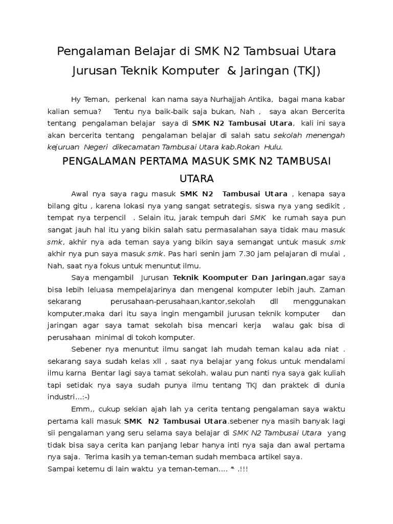 Pengalaman Belajar Di SMK N2 Tambsuai Utara Jurusan Teknik Komputer