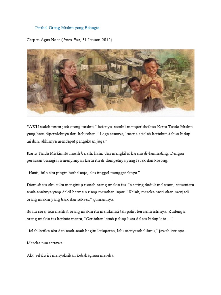 CANDU MEMBACA: CERPEN PERIHAL ORANG MISKIN YANG BAHAGIA OLEH AGUS NOOR