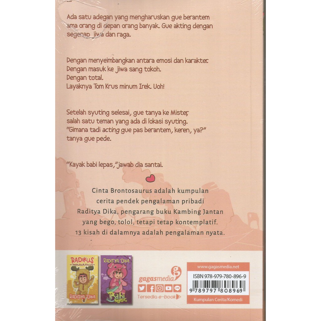 agromedia distributor on Twitter: “Cinta Brontosaurus adalah kumpulan cerita pendek pengalaman pribadi Raditya Dika, pengarang buku Kambing jantan yang bego, tolol, tetapi tetap kontemplatif. 13 kisah di dalamnya adalah pengalaman nyata. Penulis:
