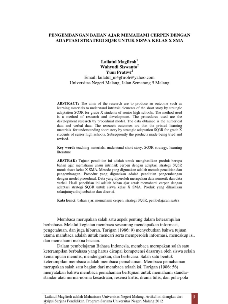 Bahan Ajar, Memahami Cerpen, Strategi SQ3R, Pembelajaran Sastra