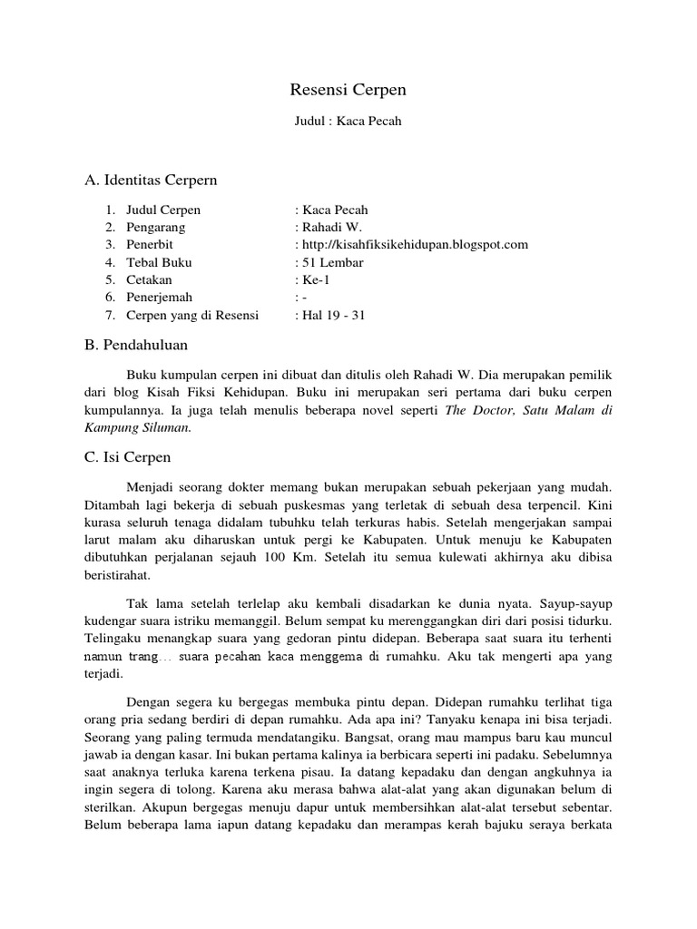DOC) Teks Ulasan Cerpen Beserta Ulasannya | Resty Nozawa …